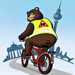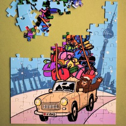 In summer, the bear likes to ride his bike through Berlin and in the run-up to Christmas he gets his Trabi out of the garage. Especially motifs for small and large children, Trabant and Ostalgie fans …