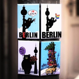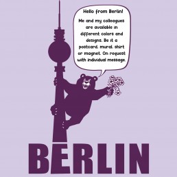The tv tower is our bear’s favorite place, Berlin’s most famous and Germany’s tallest building. Accordingly, there is a collection with motifs for different occasions. Available as postcards, magnets, t-shirt, mug…